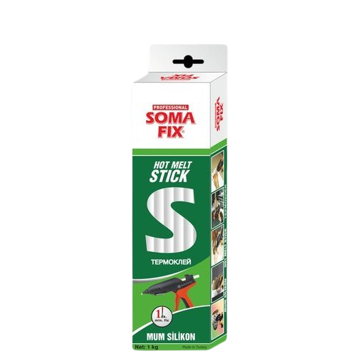 Brand: Somafix Type: Hot melt glue stick Color: Translucent Size: 7.4mm x 300mm Quantity: 1 piece