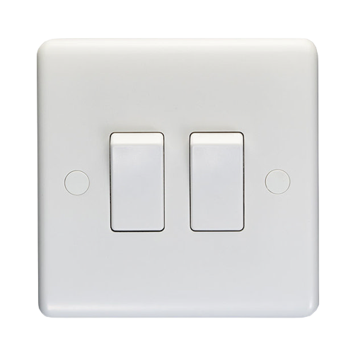 Finish: White Type: 2 Gang 2 Way Switch Wattage: 10A Dimensions: 86 x 86 x 7 mm