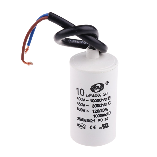 Capacitance: 10 µF Voltage rating: 450 V Frequency: 50/60 Hz