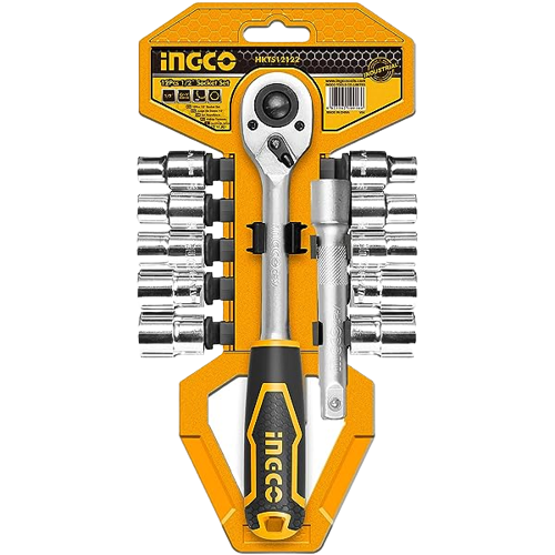 Brand Ingco Material Alloy Steel Item Dimensions LxWxH 12 x 5 x 5 Centimeters Item Weight 350 Grams Item Package Quantity 1 12PCS 1/2" Socket set 10pcs socket:10,11,12,13,14,15,17,19,21,24mm 1pcs 1/2" 45T quick release ratchet handle 1pcs 5" extention bar 50BV30 High quality CrV steel Micro finished and chromed plated