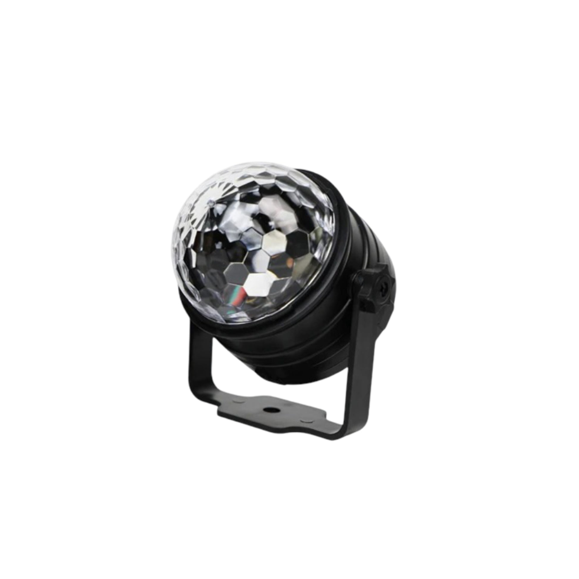 Full color rotating LED lamp creates dynamic lighting effects for parties and events.